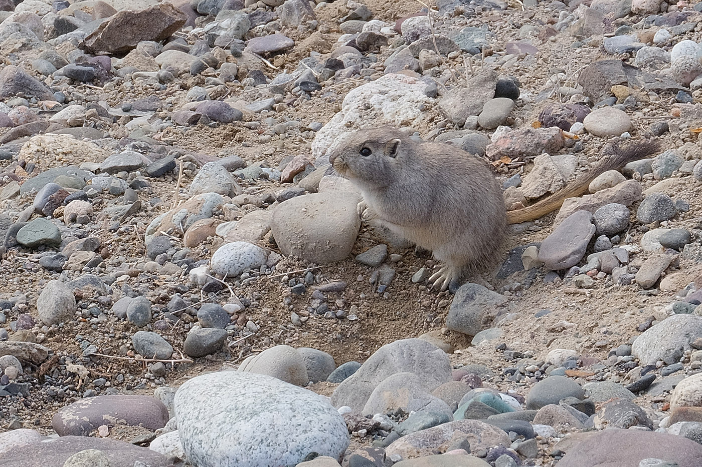| Владимир Панкратов | Большая песчанка сидит у своей норки морозным утром. Чарынский каньон. Декабрь. |