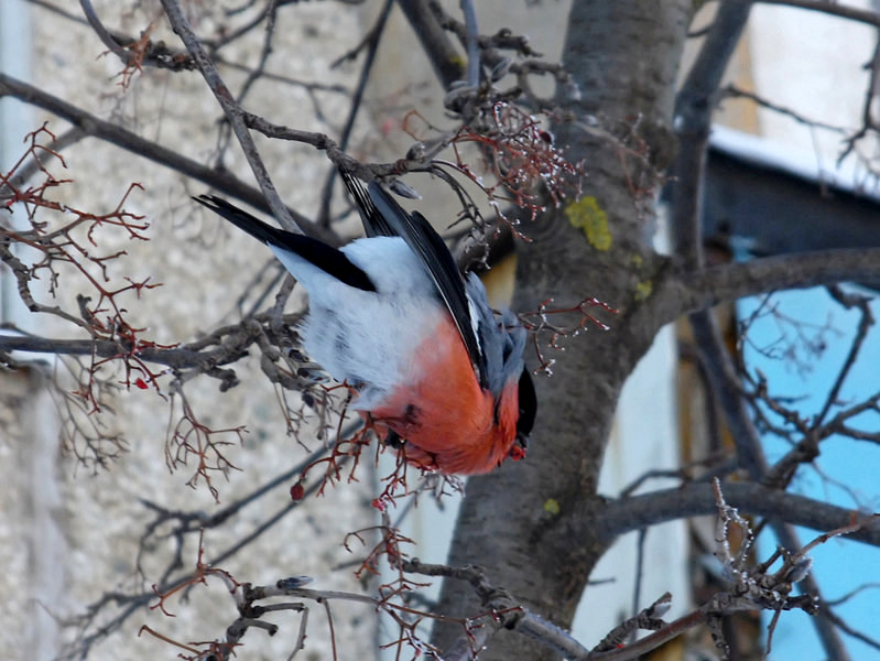 | Мария Новикова | У нас хоть и трясины, но свиристели всё же прилетают иногда и молниеносно объедают рябину у меня под окном  |