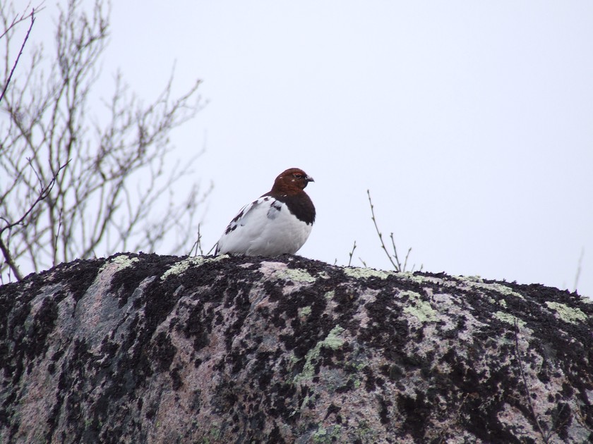 Белая куропатка, петух на гнездовой арене, середина июня.