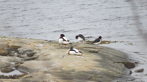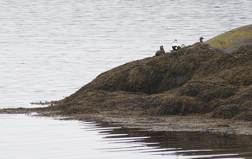 Компания обыкновенных гаг подглядывает за мной из-за камня.