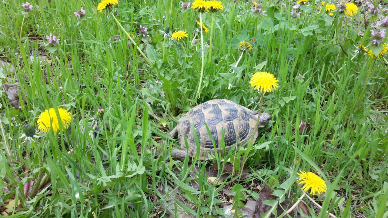 Местные  Лет десять назад сын с пацанами притащил домой из леса (они любили на великах гонять до Саук-Дере по полевым дорогам) огромную черепаху. Как он её вёз - это отдельная история, уже со сложившимися мифами  Черепаха со слов "плевалась", кусалась, шипела, пряталась, высовывалась снова... В результате сына мы хорошенько отругали за неподобающее отношение к животным, но всё же черепах (пола не знали) был пока временно до лучших времён поселён у нас в саду, где облюбовал себе несколько уютных местечек, успешно перезимовал в земле под золой от костра, весной проснулся и наоткладывал кучу яиц близ песочницы маленькой тогда нашей Сашеньки, большой, кстати, и смелой любительницы разнообразной живности! Появились черепашата, малюсенькие, 8 штук. Подросли как-то незаметно, а большой черепах размножался ещё года три подряд, чем вызвал у нас всех недоумение  Но потом уж мне и тут на форуме подсказали, и почитали про их размножение, всё поняли. Большая черепаха пару лет назад куда-то исчезла, маленьких дети пораздавали жаждущим, несколько подросших мы с мужем вывезли на их историческую родину (лес в Саук-Дере  ), а вот снова 4 довольно крупных особи и четверо совсем малышей промышляют у меня в саду... Обожают опавшую шелковицу, лопают зелёные яблоки и груши, меня вообще не боятся, ждут морковки, которой я их подкармливаю иногда, хотя это и не обязательно - постоянно какие-нибудь фрукты-ягоды валяются на земле. Да, кроме них у нас огромное семейство ежей! Ежат частенько приходится спасать из углублений разных (ступеньки и ниша перед входом в подвал, и пр. У нас нет на участке никаких мышей, капустянки, уже и ящериц тоже нет... Я их (ёжиков) хочу как-нибудь переловить и постепенно пересадить за забор к лужку и кустам.