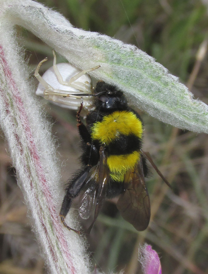 А представляете, какой бедный паучок голодным сидел? У него поди брюшко от голода подводило. Может, он страшно жалел, что не может просто поесть нектара, а вынужден полагаться на удачу и маскировку, чтоб пообедать.