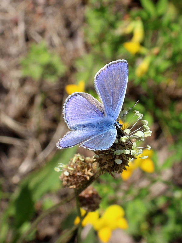 Безобидная голубянка не отказалась попозировать, подкрепляя силы на соцветии подорожника на лугу в Ждановичах, 17.06.2017.