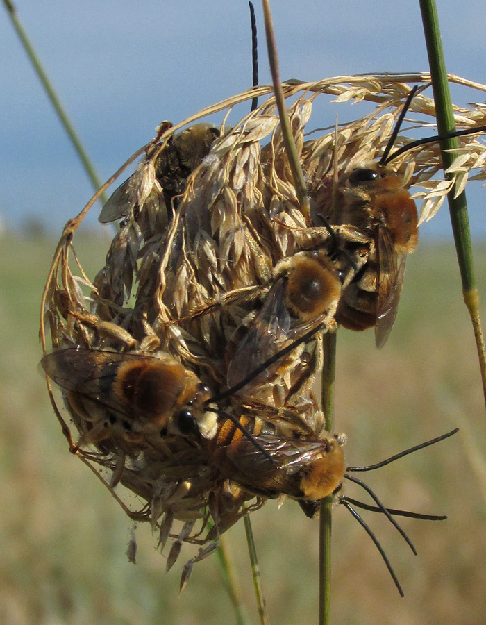 А вот так сегодня "укладывались спать" самцы Eucera sp.