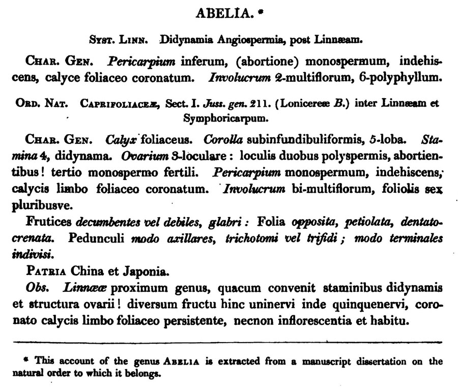 | Андрей Ковальчук | Протолог рода Abelia R. Br. (C. Abel. Narrative of a Journey in the Interior of China: 376-377. 1818) (тип: Abelia chinensis R. Br.):
