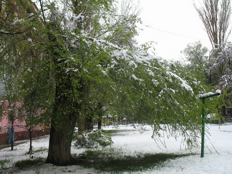 | Светлана Коурова | Красивое сочетание - снег на цветущих деревьях. А вот сильно ли оно повредит урожаю?  |
