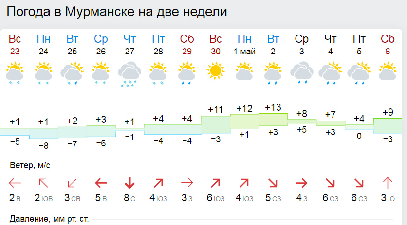 А в Мурманске погода вполне сносная ожидается, по сезону. Не знаю, где Евгений Генрихович такой экстремизьм увидел, на гисметео такое вот.