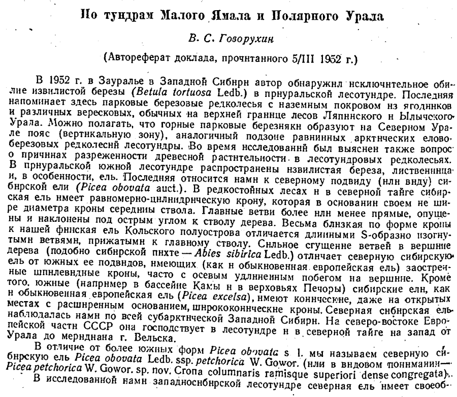 | Андрей Ковальчук | Протолог Picea obovata ssp. petchorica Govor. (Бюллетень МОИП. Отдел геологический 27(3): 94(-95  :