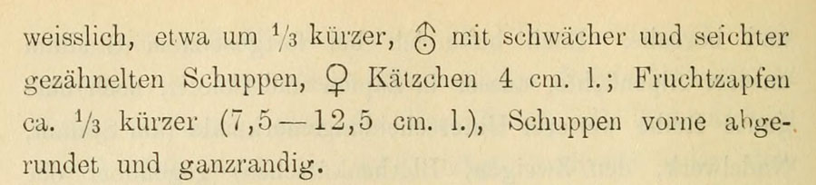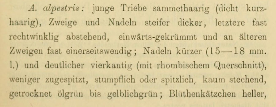 Диагноз Abies alpestris Brügger из первоописания (Jahresbericht der Naturforshenden Gesellschaft Graubündens 29: 171(-172). 1886):