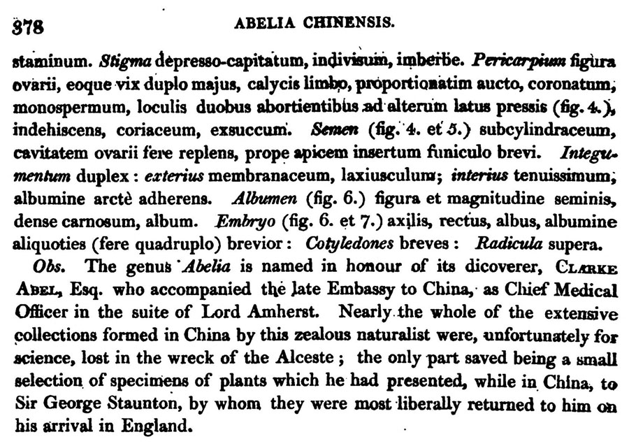 Протолог Abelia chinensis R. Br. (C. Abel. Narrative of a Journey in the Interior of China: 377-378. 1818):