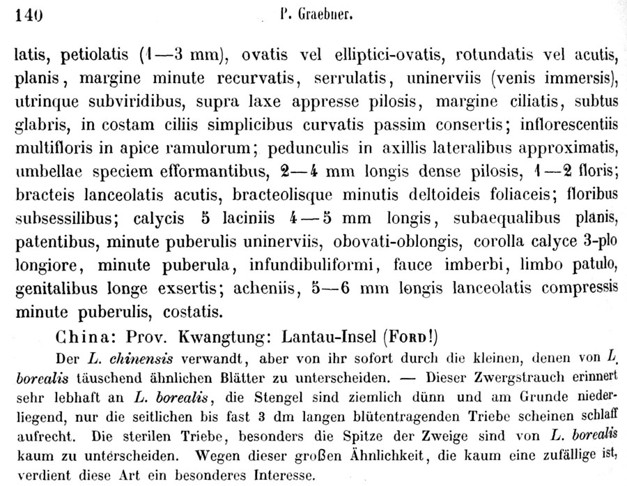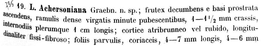 Протолог Linnaea aschersoniana Graebn. (Botanische Jahrbücher für Systematik, Pflanzengeschichte und Pflanzengeographie 29(1): 139-140 (sphalm. achersoniana). 1900 [22 May 1900]):