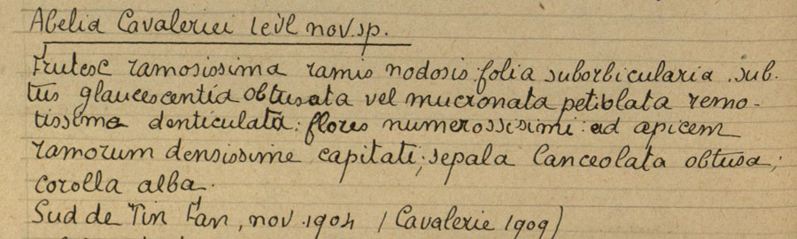 Протолог Abelia cavaleriei H. Lév. (Flore du Kouy-Tchéou, Autographée en Partie par l'Auteur H. Léveillé: 60. 1914-1915):