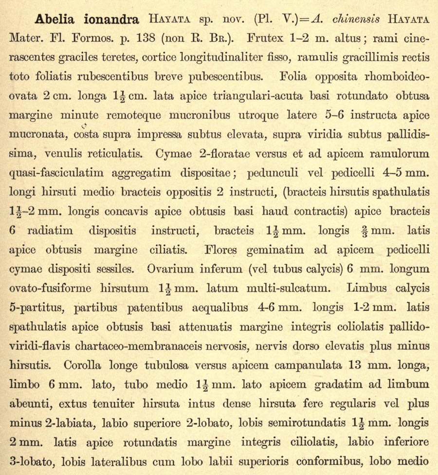 | Андрей Ковальчук | Протолог Abelia ionandra Hayata (Icones Plantarum Formosanarum nec non et Contributiones ad Floram Formosanam 7: 31-32. 1918 [25 Mar 1918]):