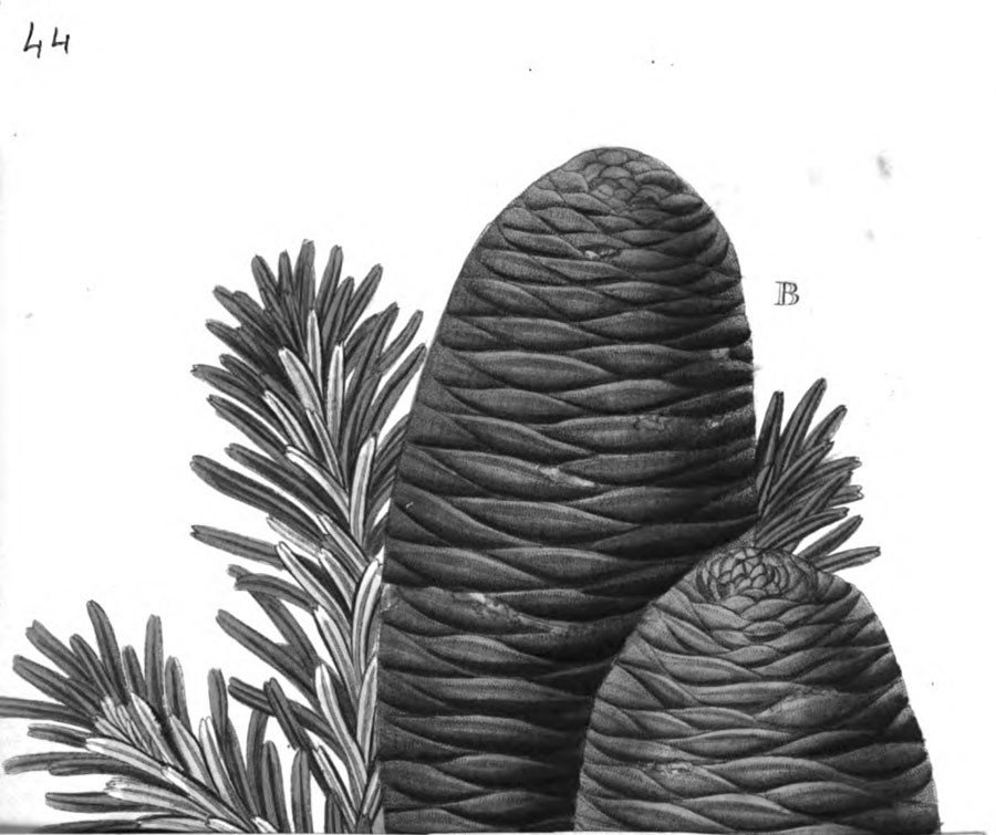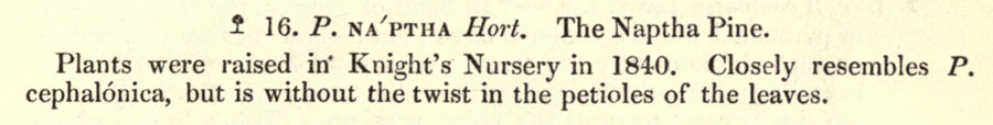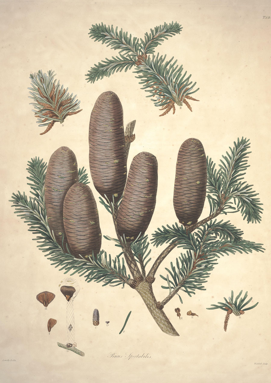 Протолог Pinus spectabilis D. Don и сопровождающий его рисунок (Description of the genus Pinus: illustrated with figures, directions relative to the cultivation, and remarks on the uses of the several species: also descriptions of many other trees of the family of Coniferæ / by Aylmer Bourke Lambert 2: 3(-4). 1824):