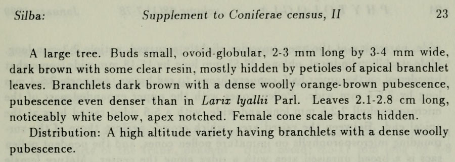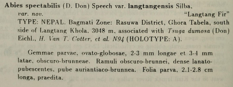 Протолог Abies spectabilis var. langtangensis Silba (Phytologia 68(1): 22(-23) (1990  :