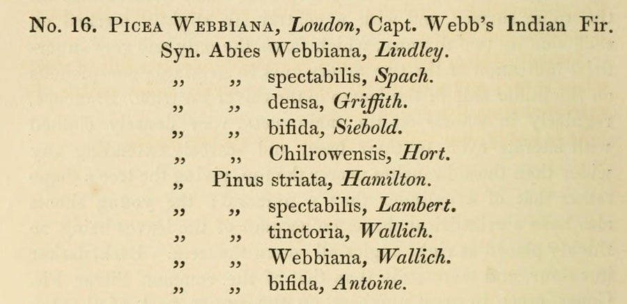 | Андрей Ковальчук | Название "Abies chilrowensis Parl." можно отметить как недействительное, т.к. оно было обнародовано как синоним Pinus webbiana. |