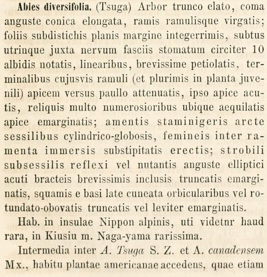 Протолог Abies diversifolia Maxim. (Bulletin de l’Académie Impériale des Sciences de Saint-Pétersbourg 12: 229 (-230). 1867 [13 Nov 1867]):