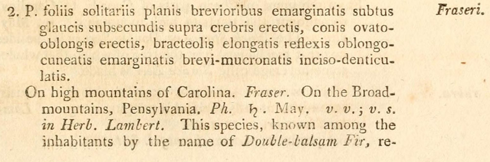| Андрей Ковальчук | Протолог Pinus fraseri Pursh (Flora Americae Septentrionalis; or, a Systematic Arrangement and Description of the Plants of North America 2: 639(-640). 1813 [Dec 1813]):