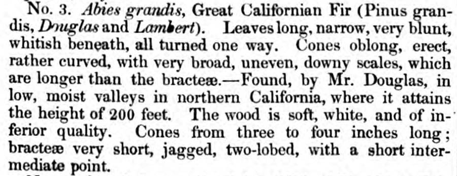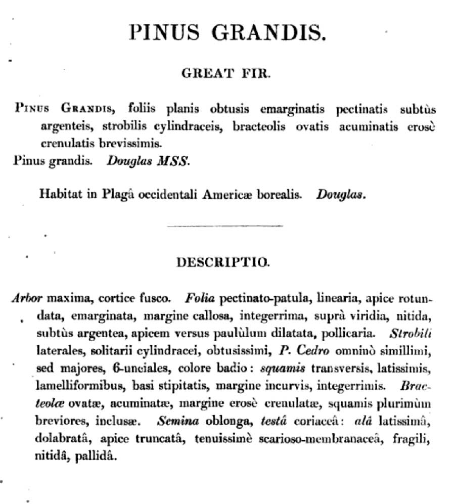 | Андрей Ковальчук | Протолог Pinus grandis Douglas ex D. Don (Description of the genus Pinus, with directions relative to the cultivation, and remarks on the uses of the several species: also, descriptions of many other new species of the family of Coniferae, A. Edition: [3d ed. or "editio minor"] 2: unnumbered page between 144 & 145. 1832):