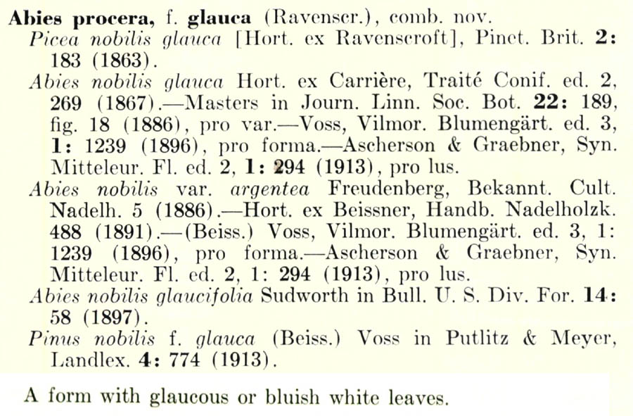 | Андрей Ковальчук | Похоже, что авторство этой комбинации следует записывать как Abies procera f. glauca (Ravenscr.) Rehder: