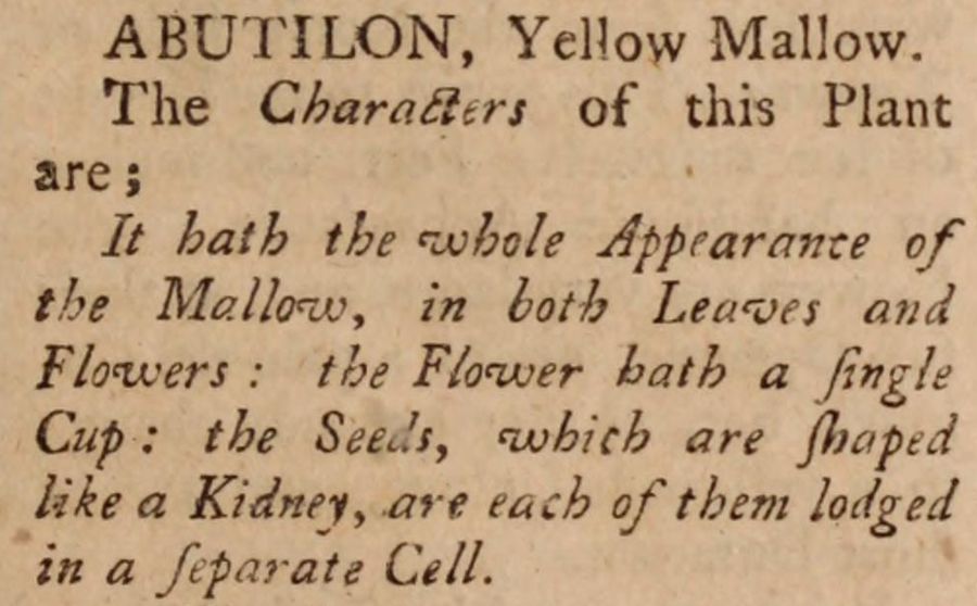 | Андрей Ковальчук | Протолог рода Abutilon Mill. (лектотип: Abutilon theophrasti Medikus [ Sida abutilon L.]) (The Gardeners Dictionary: containing the methods of cultivating and improving all sorts of trees, plants, and flowers, for the kitchen, fruit, and pleasure gardens, as also those which are used in medicine : with directions for the culture of vineyards, and making of wine in England : in which likewsie are included the practical parts of husbandry ...4th ed., corrected and enlarged: [23]. 1754 [28 Jan 1754]):