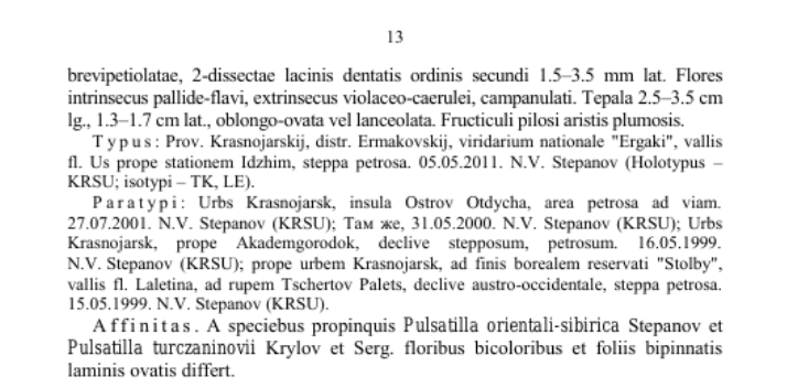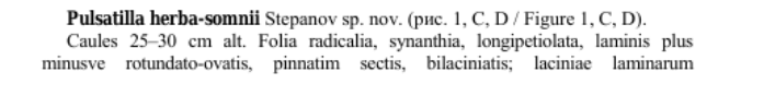" Pulsatilla herba-somnii Stepanov sp. nov. " именно новый вид; | | Владислав Григоренко | Это вопрос к паталого-анатомам... Но надо им подсунуть пригодный для анализа материал из locus classicus обоих таксонов. | | Юрий Постников | есть у меня один такой locus classicus ) | | Юрий Постников | Владислав Григоренко пишет:формально у нотовида должен быть биномен