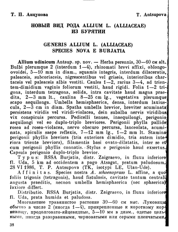(Новости систематики высших растений, 1989. Т. 26. С. 38-39).