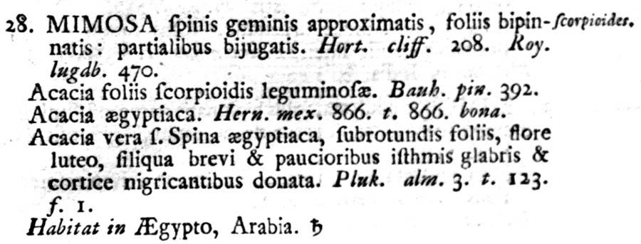 Протолог Mimosa nilotica L. (Species Plantarum 1: 521(-522). 1753 [1 May 1753]):
