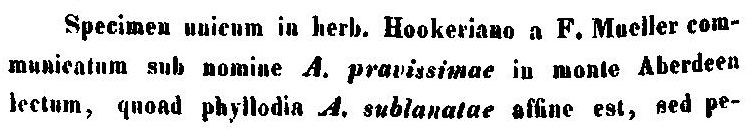 Авторское описание вида было опубликовано чуть позже (Fragmenta Phytographiae Australiae 1(1): 4. 1858 [Mar 1858]):