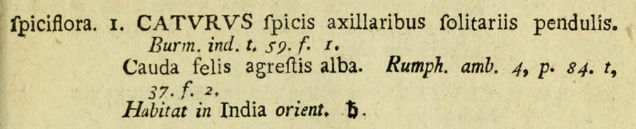 Протолог Caturus spiciflorus L. (Mantissa Plantarum. Generum Editionis vi et Specierum Editionis ii: 127. 1767 [15-31 Oct 1767]):