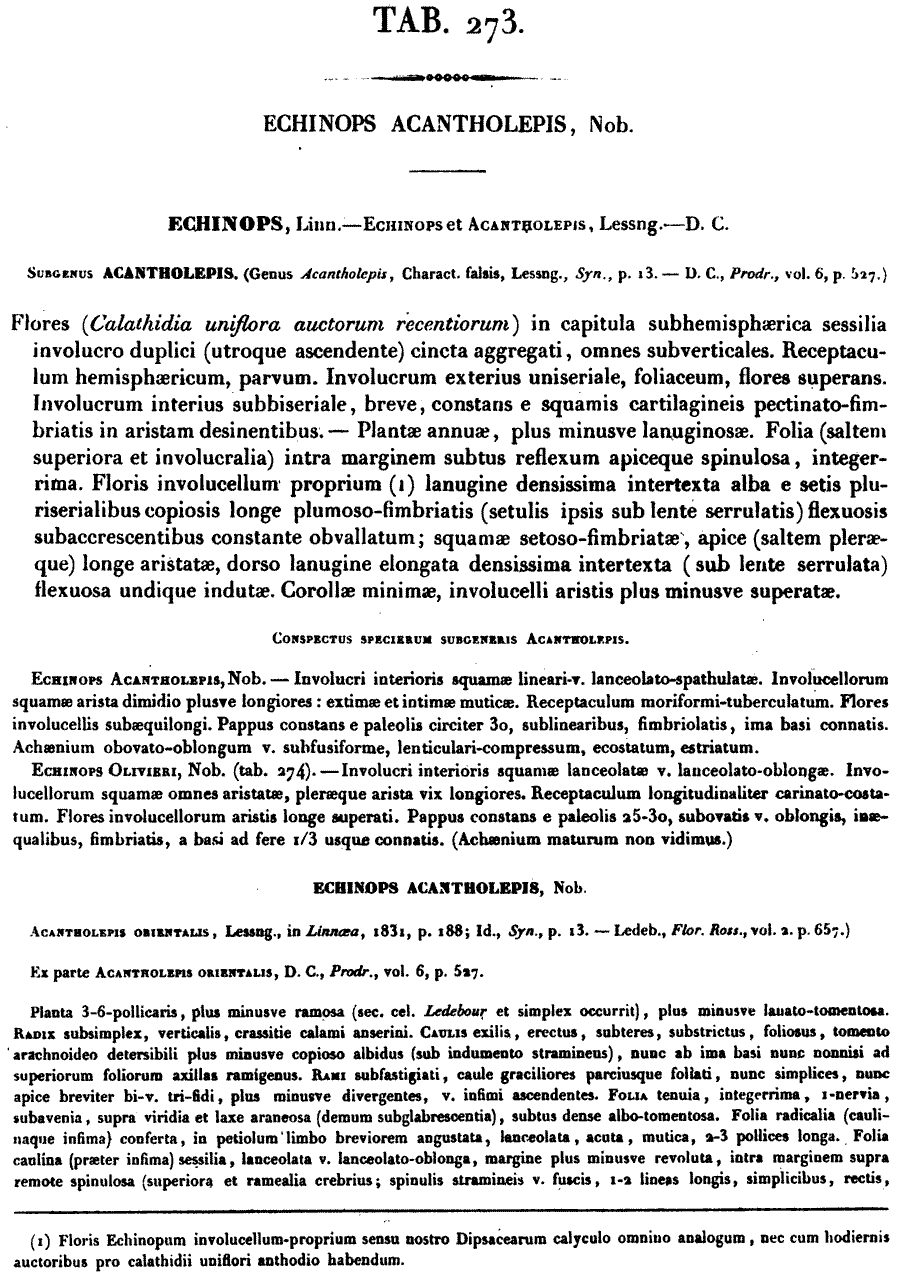 | Дмитрий Орешкин | Сделал Echinops acantholepis Jaub. & Spach основным названием. |