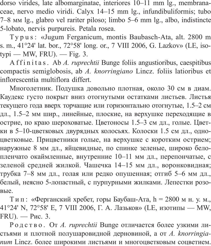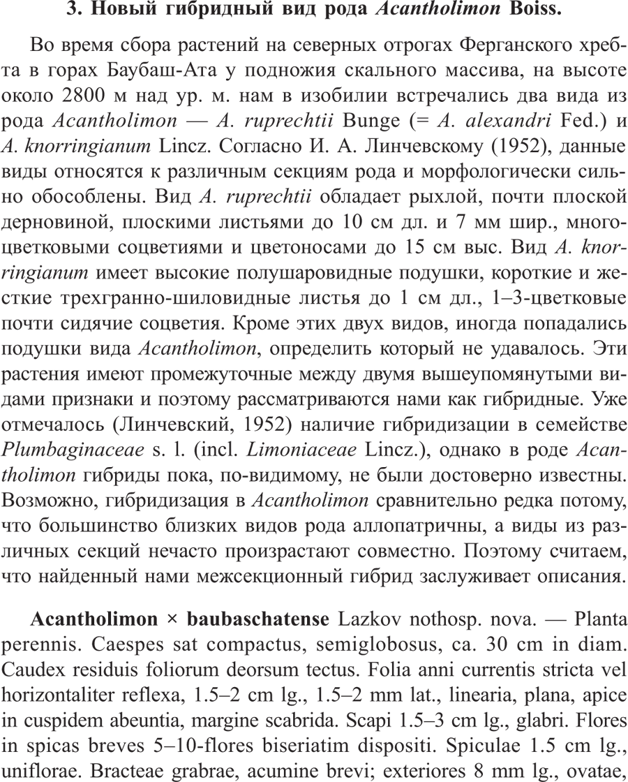 Протолог Acantholimon × baubaschatense Lazkov (Новости систематики высших растений 40: 230 (-232; fig. 3). 2009 [2008 publ. 30 Mar 2009]):