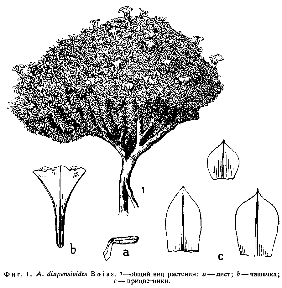 | Андрей Ковальчук | Иллюстрация из работы Е. Черняковской " Acantholimon diapensioides Boiss. и цикл близких видов" (Труды Ботанического института АН СССР. Сер. 1. Флора и систематика высших растений 3: фиг. 1. 1936):
