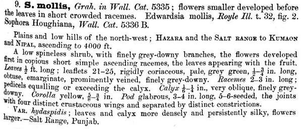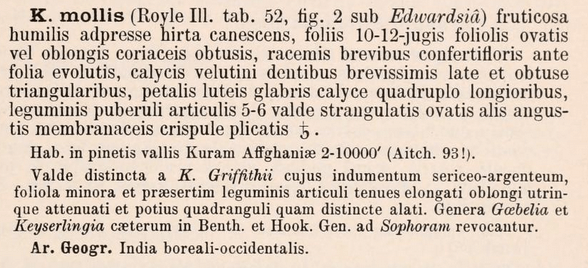 Название Sophora mollis Graham ex Baker не было действительно обнародовано ( http://www.tropicos.org/Name/13032989), поэтому понадобилась помощь Royle. |