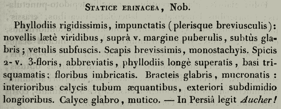Протолог Statice erinacea Jaub. & Spach (Annales des sciences naturelles. Botanique, ser. 2, 20: 255. 1843 [Oct - Nov 1843]):