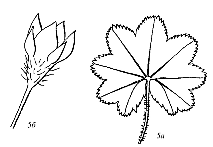 Рисунок Н.Н. Сычак из 10-го тома Флоры Восточной Европы, стр. 498: а) прикорневой лист; б) цветок.