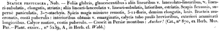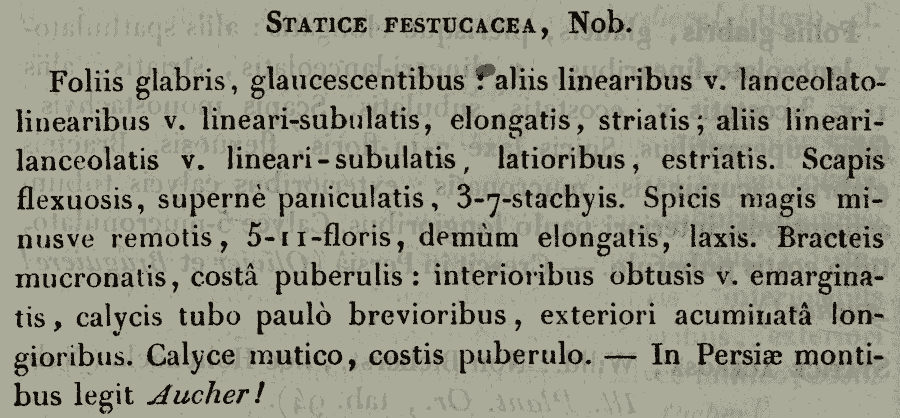 Протолог Statice festucacea Jaub. & Spach (Annales des sciences naturelles. Botanique, ser. 2, 20: 254. 1843 [Oct - Nov 1843]):