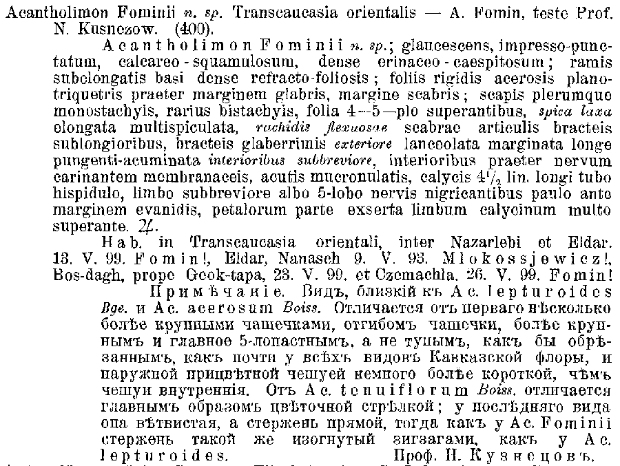 Протолог Acantholimon fominii Kusn.: