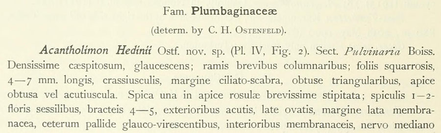 Протолог Acantholimon hedinii Ostenf. (in S. Hedin. Southern Tibet : discoveries in former times compared with my own researches in 1906-1908 v. 6, p. 3: 48(-49). 1922):