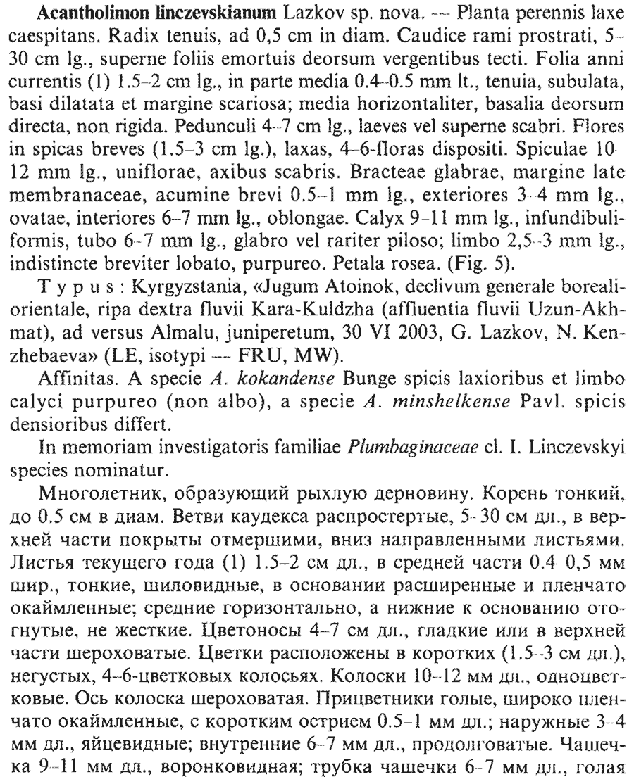 Протолог Acantholimon linczevskianum Lazkov (Новости систематики высших растений 36: 38 (37-39; fig. 5). 2004 [15 Nov 2004]):
