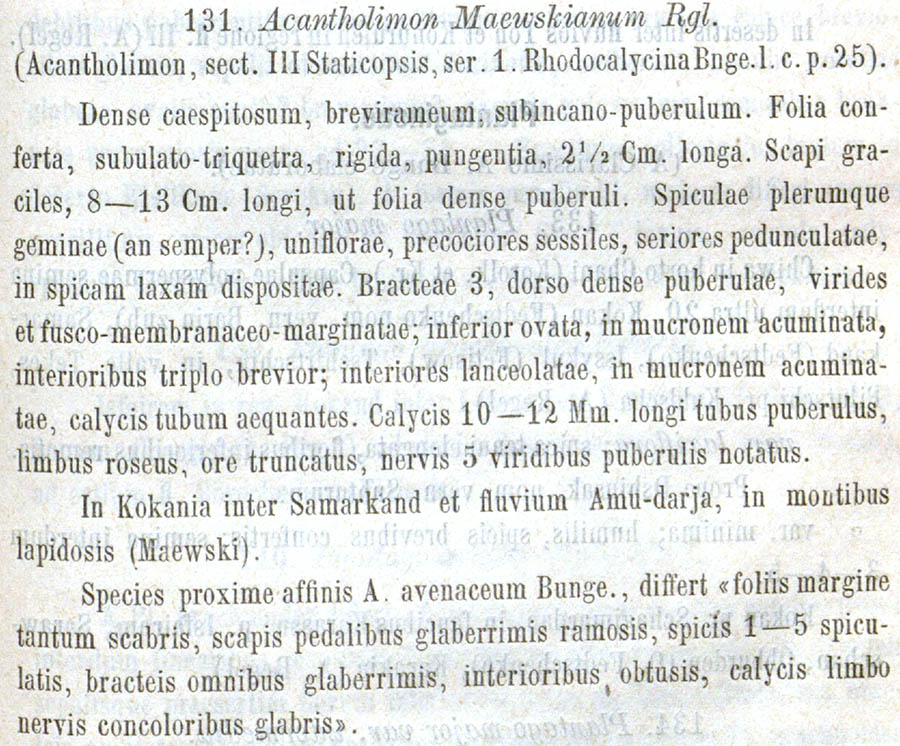 | Андрей Ковальчук | Протолог Acantholimon maewskianum Regel (Acta Horti Petropolitani 6: 391. 1879):