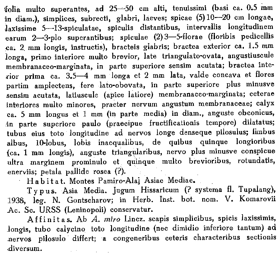 | Андрей Ковальчук | Протолог Acantholimon mirandum Lincz. (Флора СССР, т. 18: 742(-743). 1952):