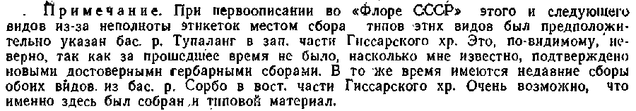 | Андрей Ковальчук | Примечние из "Определителя растений Средней Азии" о происхождении типовых образцов: