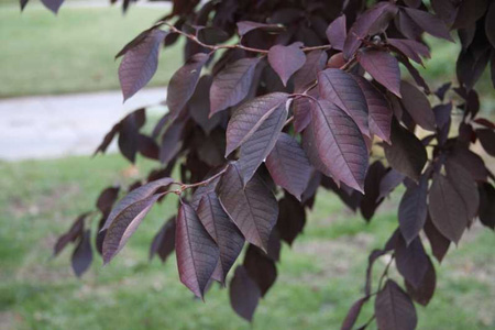 | Полина Скрыпник | Пожалуйста, помогите определить вид. Это черемуха, предположительно виргинская, но в определителях этот признак (явно фиолетовые листья) не фигурирует (использовала Определитель древесных растений по листьям Н.М. Андронов, П.Г. Богданов, и Древесные растения азиатской России И.Ю. Коропачинский), дерево около 4-5 м. высотой, край листа мелкопильчатый, жилки второго порядка петляют. Молодые листья зеленые, но быстро приобретают темно-фиолетовый оттенок. |
