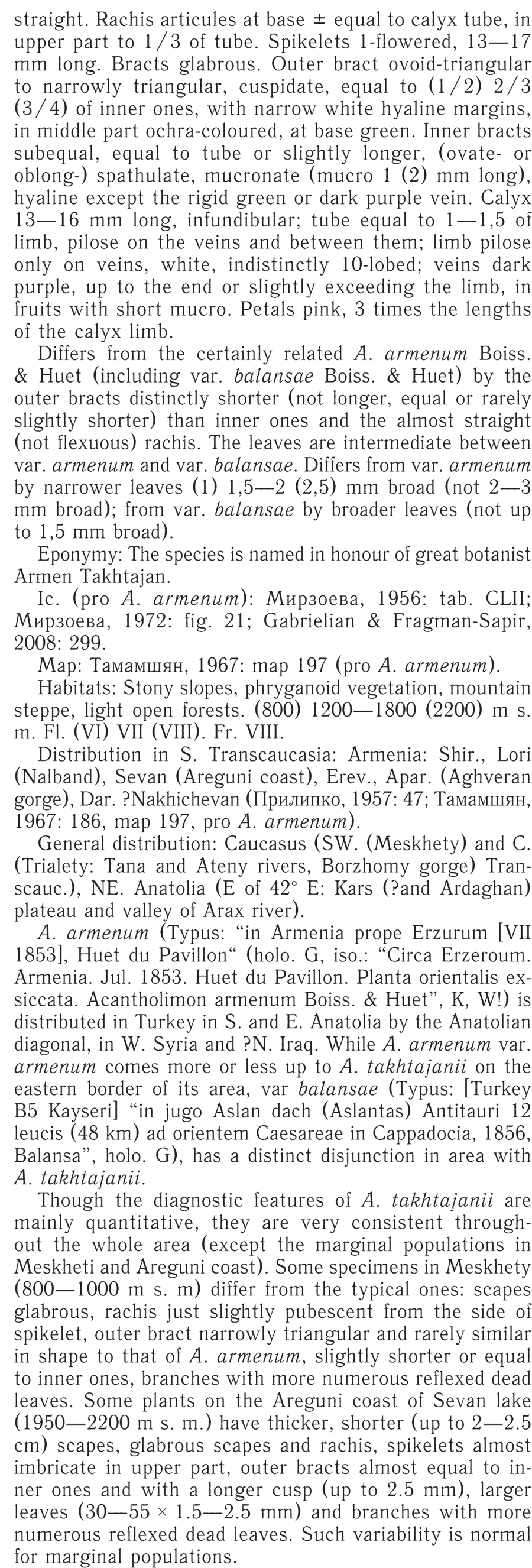 Протолог Acantholimon takhtajanii Ogan. (Takhtajania 1: 54(-55). 2011):