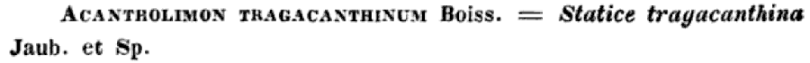 Обнародование комбинации Acantholimon tragacanthinum (Jaub. & Spach) Boiss. (Diagnoses Plantarum Orientalium novarum ser. 1, 7: 81. 1846 [Jul-Oct 1846]):