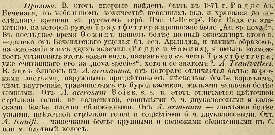 Протолог Acantholimon trautvetteri Kusn. (Материалы для флоры Кавказа (Flora Caucasica Critica) IV(1): 183(-184). 1902):
