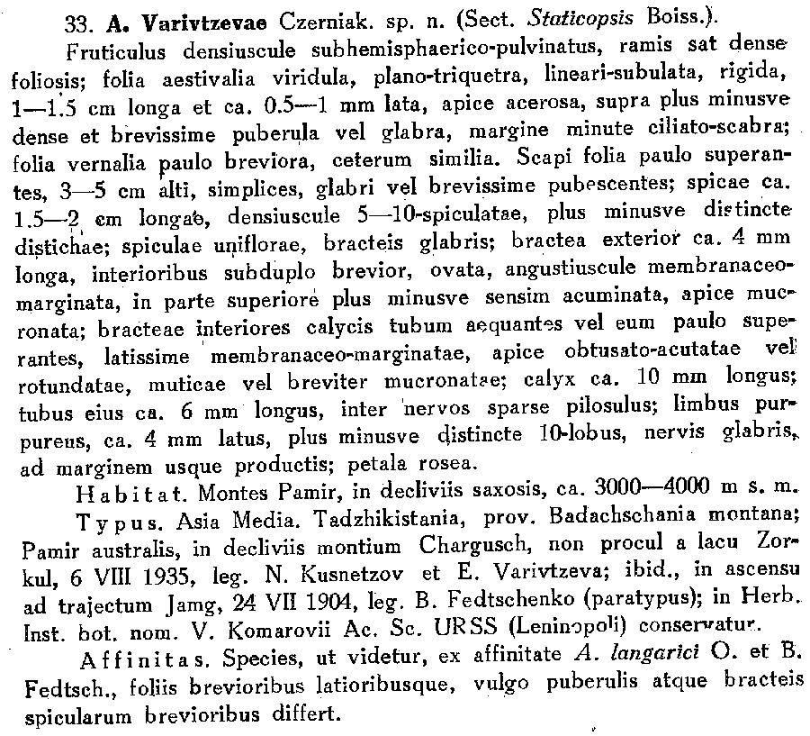 Вид назван в честь советского ботаника Евгении Алексеевны Варивцевой (1903 - ?).