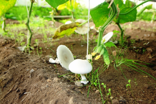| Серый Крот | И по грибам тоже вопрос. В теплице есть шампиньоны, а эти - с белыми или очень слабо буреющими пластинками. На вкус вроде не бледные поганки, язык не жгут. |