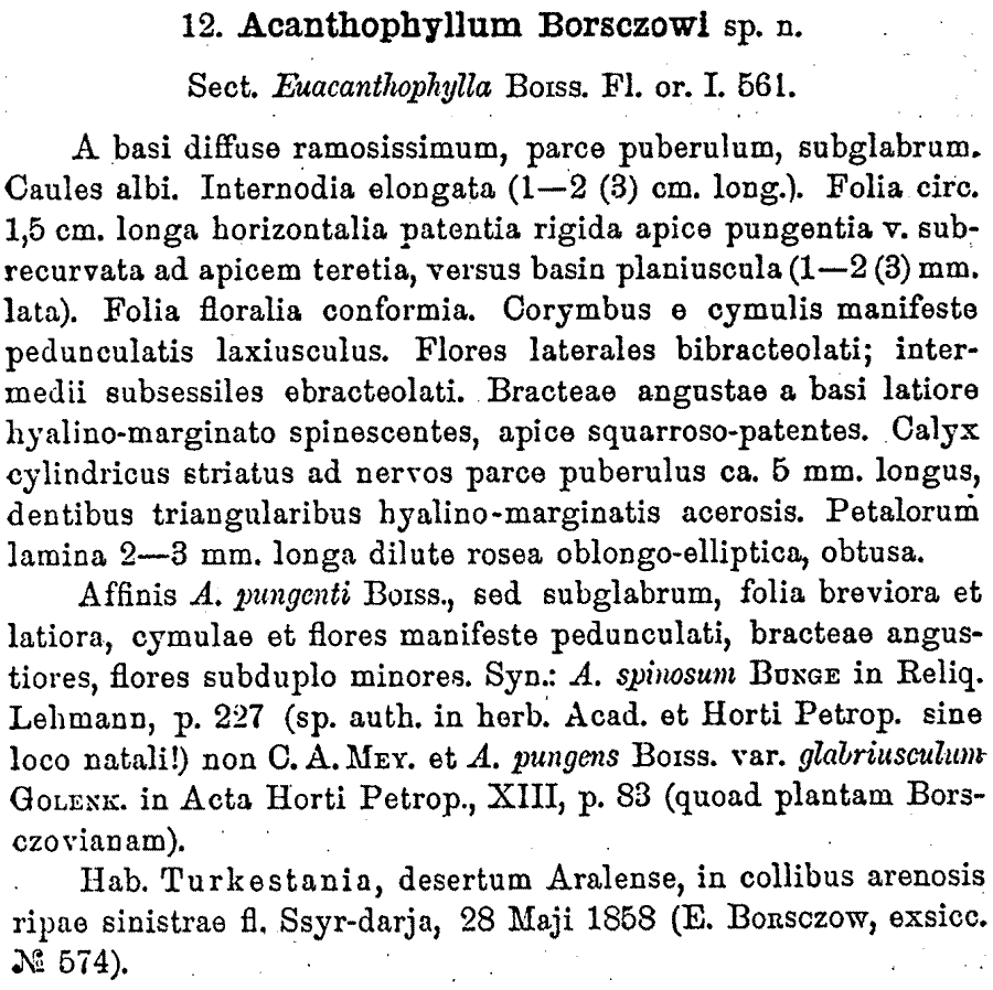 | Андрей Ковальчук | Протолог Acanthophyllum borsczowii Litv. (Travaux du Musee botanique del' Academic imperiale de Sciences de St.-Petersbourg 7: 71. 1910):